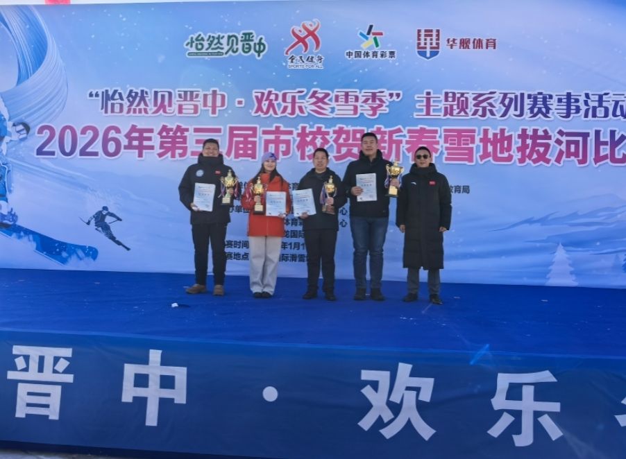 2026年1月16日,由晋中市体育局、晋中市直工委、晋中市总工会、晋中市教育局联合主办的第三届市校贺新春雪地拔河比赛在九龙国际滑雪场顺利举办,校工会联合体育学院积极组织参与,为寒冬注入了鲜明的体育活力。